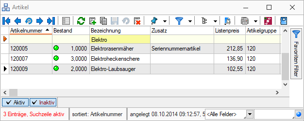 Quickfilter über alle Felder) angewendet. Ansonsten wird die Suchzeile als